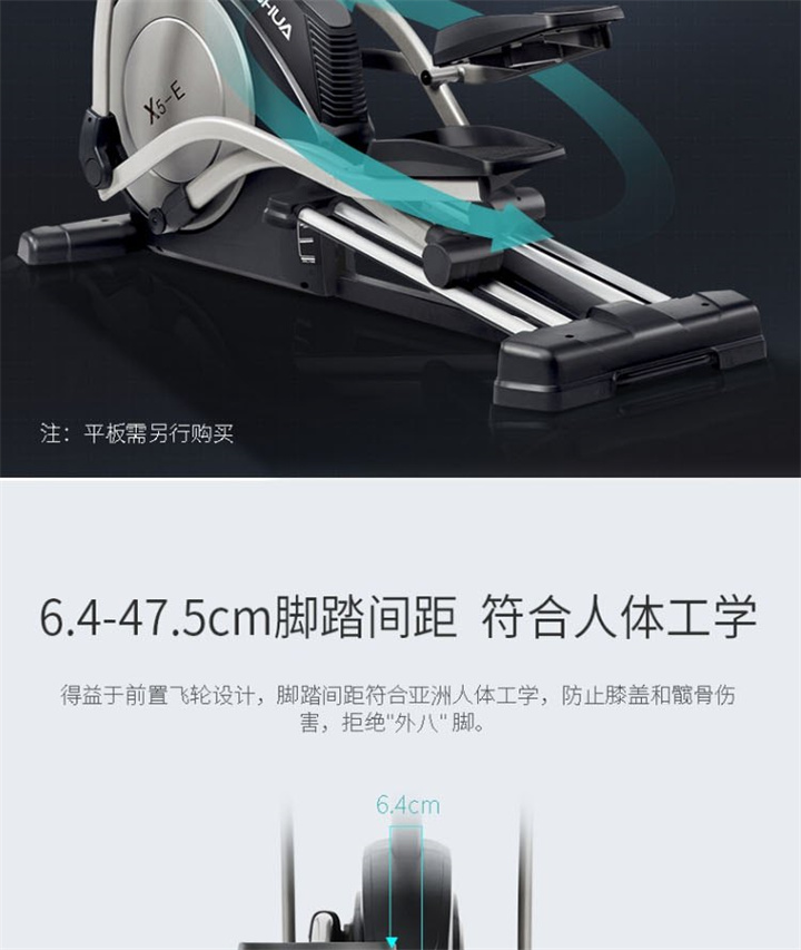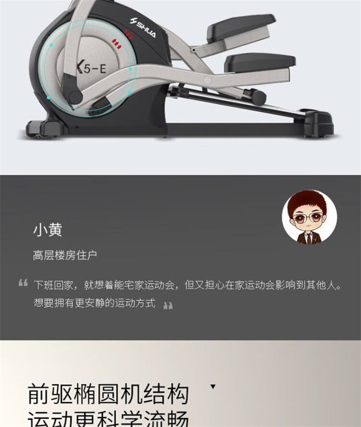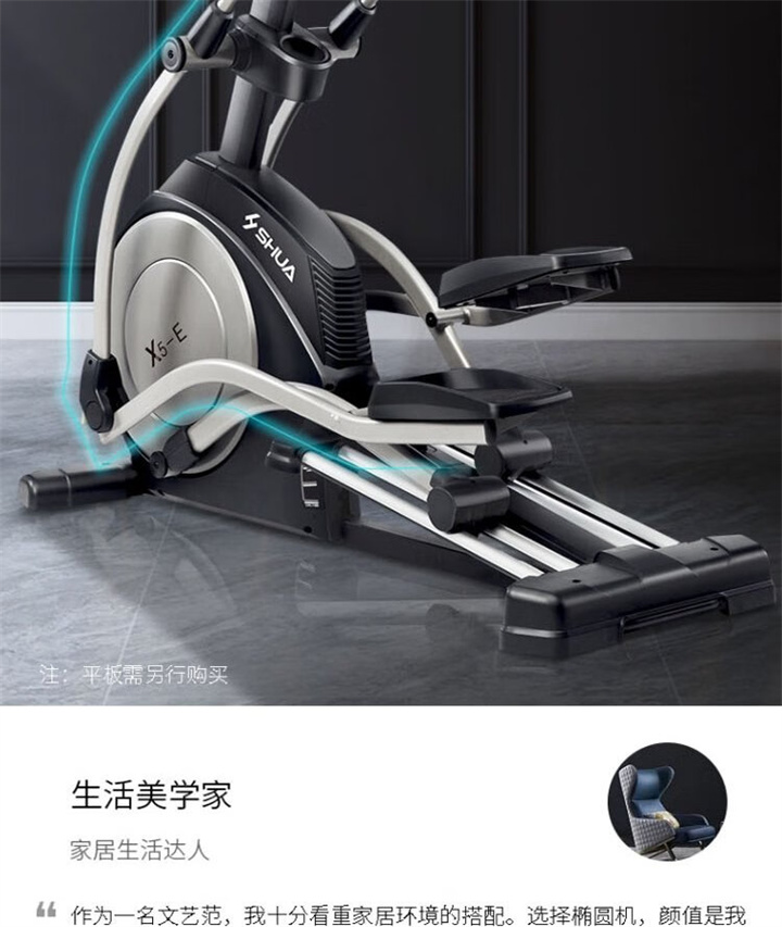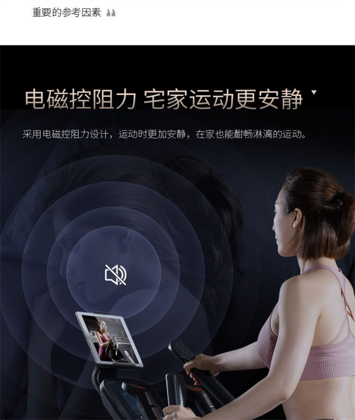 舒华家用椭圆机SH-B6500E采用电磁控系统,设有24段阻力等级,手握心律片侦测心率,7kg磁控轮。